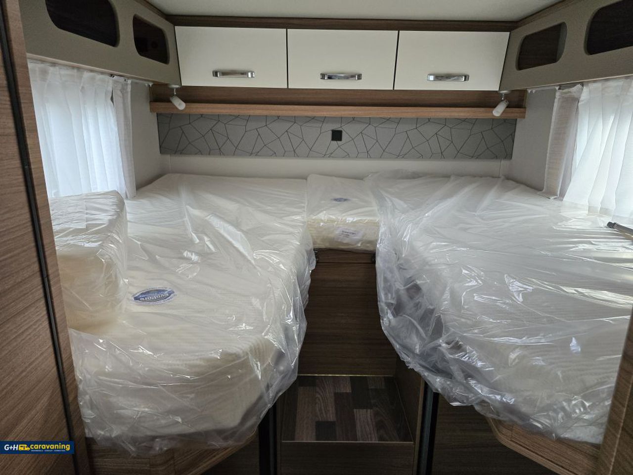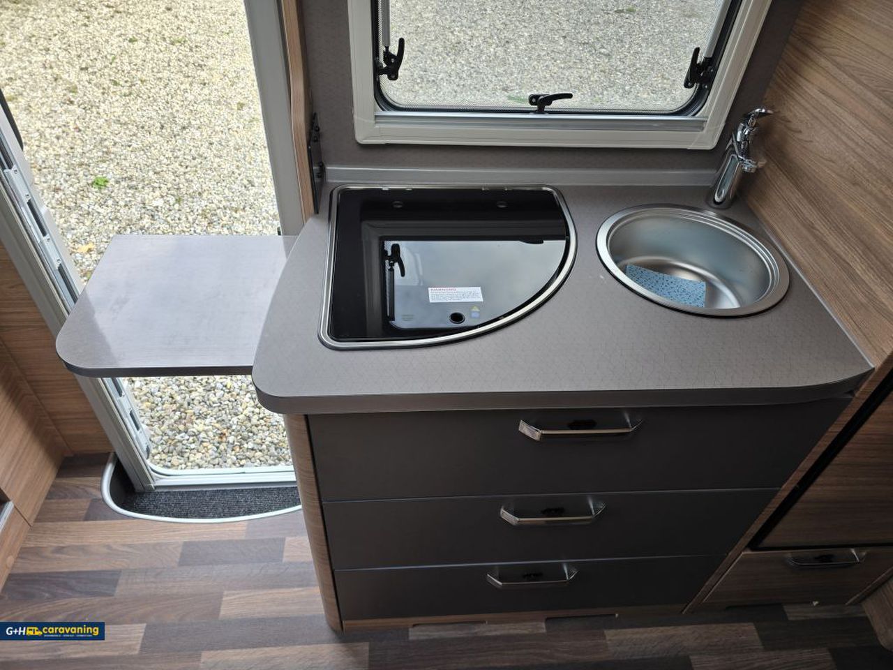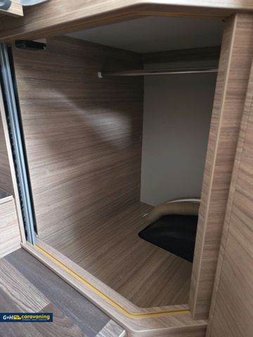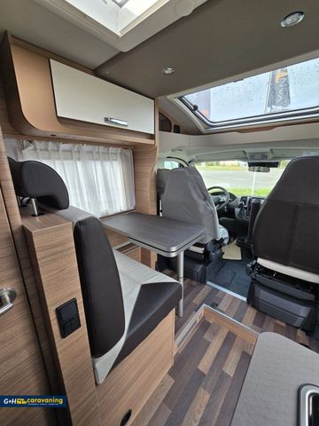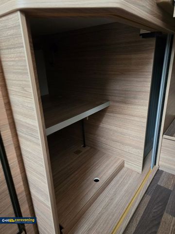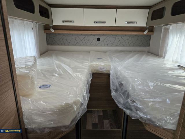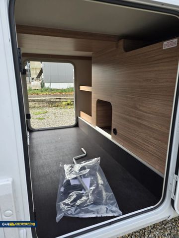Das helle und gemütliche Wohnraumdesign sorgt für ein angenehmes Raumgefühl, während durchdachte Stauraumlösungen und viele Extras (z. B. Markise, Fahrradträger, Dometic Klimaanlage, Rückfahrkamera) den Komfort unterwegs erhöhen.