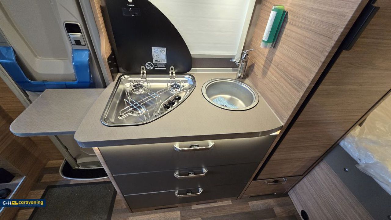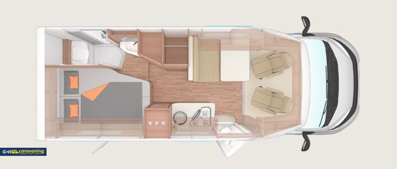 Das französische Doppelbett im Heck sorgt für bequemen Schlafkomfort, während das geräumige Bad mit Dusche/WC und die voll ausgestattete Küche für höchsten Reisekomfort sorgen. Die helle und gemütliche Wohnraumoptik mit Ambientebeleuchtung und zahlreiche Stauraumlösungen machen den PEPPER zu einem echten Wohlfühlmobil.